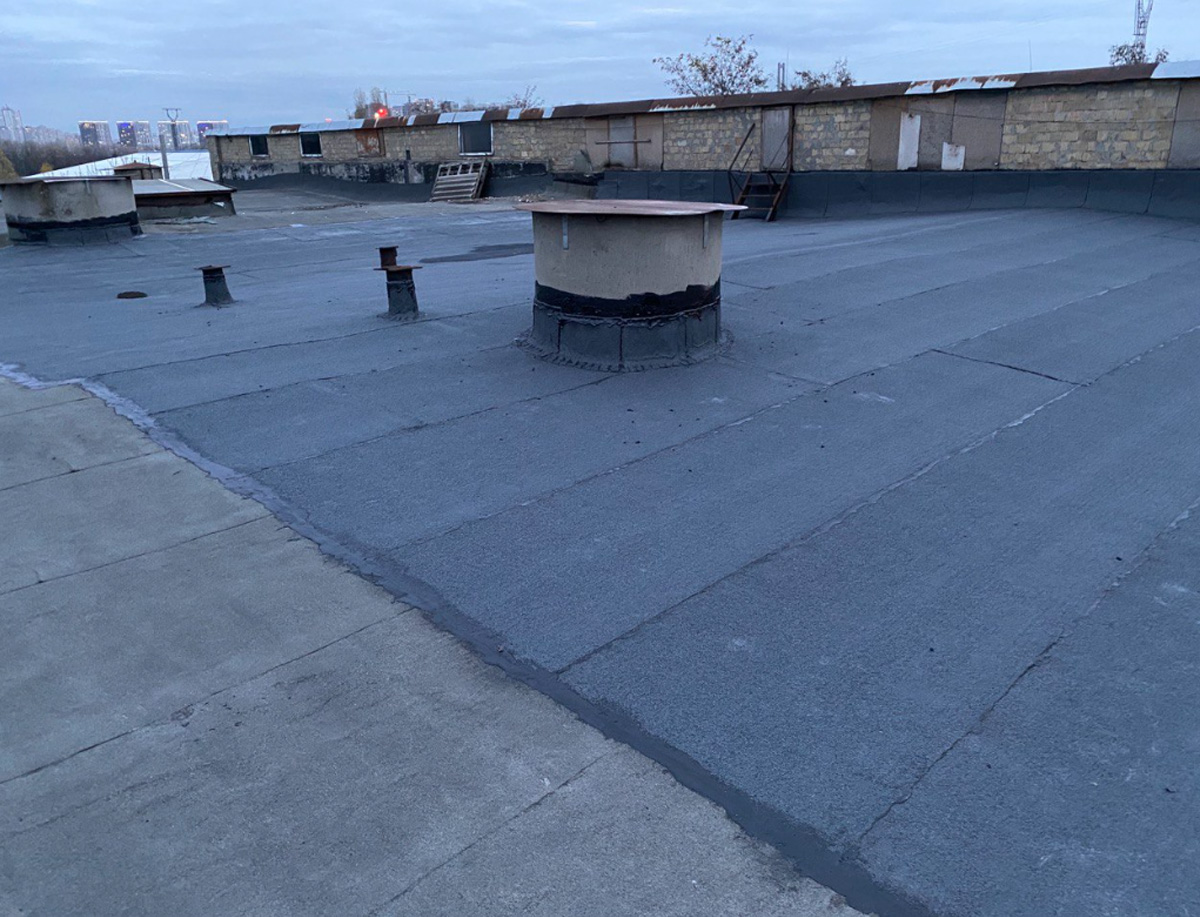 Влаштування плоскої покрівлі та гідроізоляція руберойдом, євроруберойдом, полімер-бітумними мембранами під ключ в Києві та Київській області.